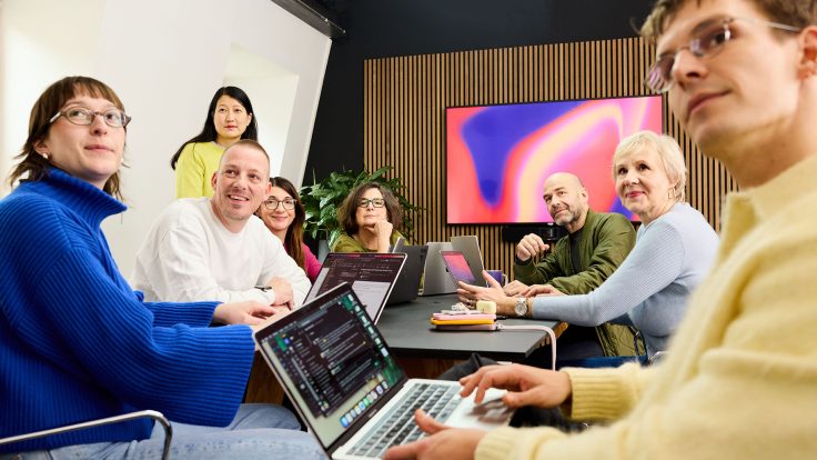 Team members collaborating in an open, creative workspace, reflecting the human‑centered and collaborative culture of IBM iX.