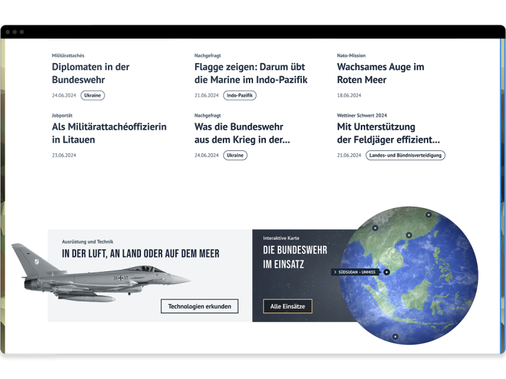 Das öffentliche Bild der Bundeswehr ist grundlegend für Vertrauen in ihre Arbeit. Mit dem Relaunch der Webpräsenz wurde die Möglichkeit geschaffen, eigene faktenbasierte Perspektiven einzubringen und einzuordnen.